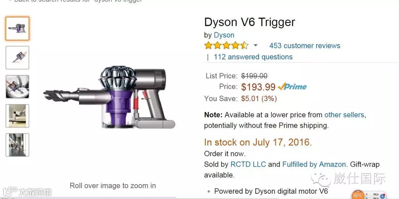 Dyson v6 trigger 手持式吸尘器原价$199,现价只要$193