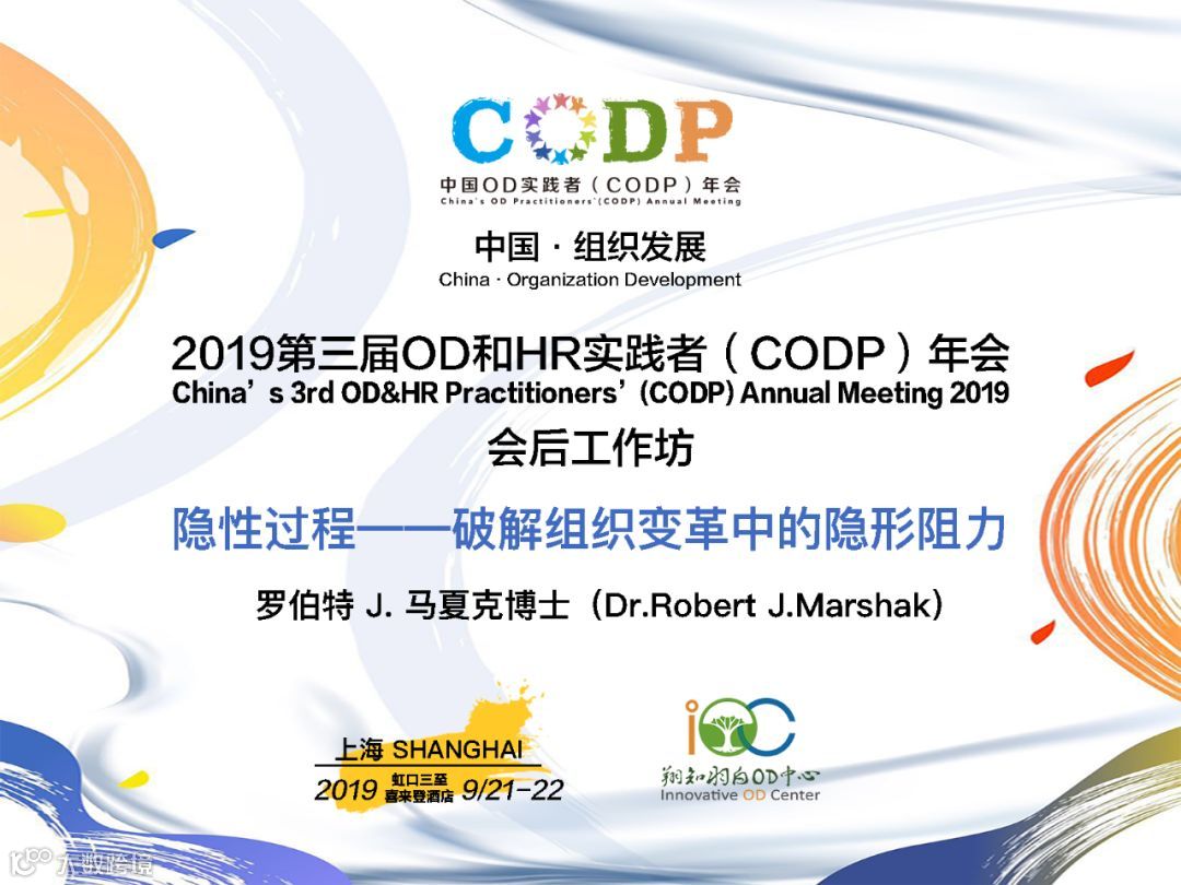 马夏克博士即将于9月20日受邀作为年会主讲嘉宾出席第三届CODP年会,并于9月21-22日为我们带来两天基于其著作研究的隐性过程会后工作坊!对OD或是对这一主题内容感兴趣的伙伴赶紧报名啦!