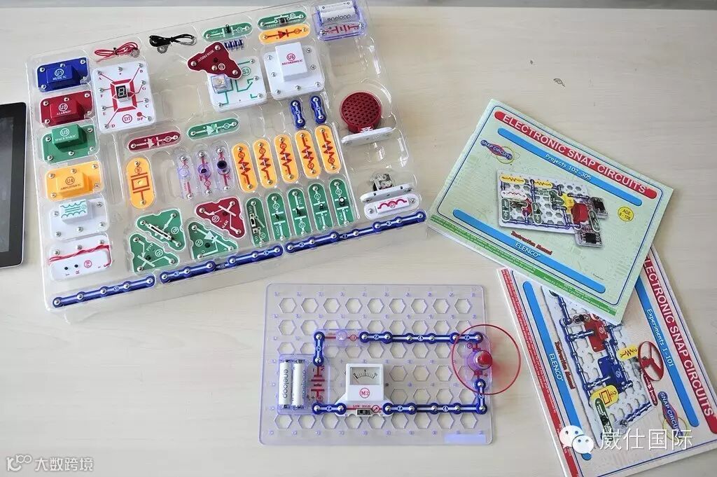 育产品奖项的Snap Circuites。通过转运公司,这套复杂的玩具套装终于到手