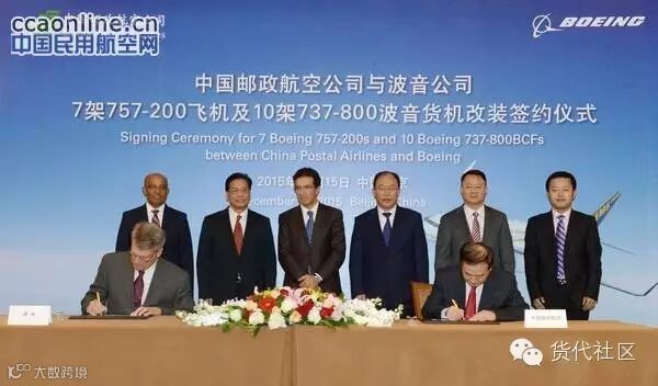 中国民用航空网讯:波音公司今日宣布与中国邮政航空达成关于购买7架757-200改装货机的协议。该协议还包括购买10架新一代737波音改装货机(BCF),这是中国邮航公司历史上最大的一笔订单。