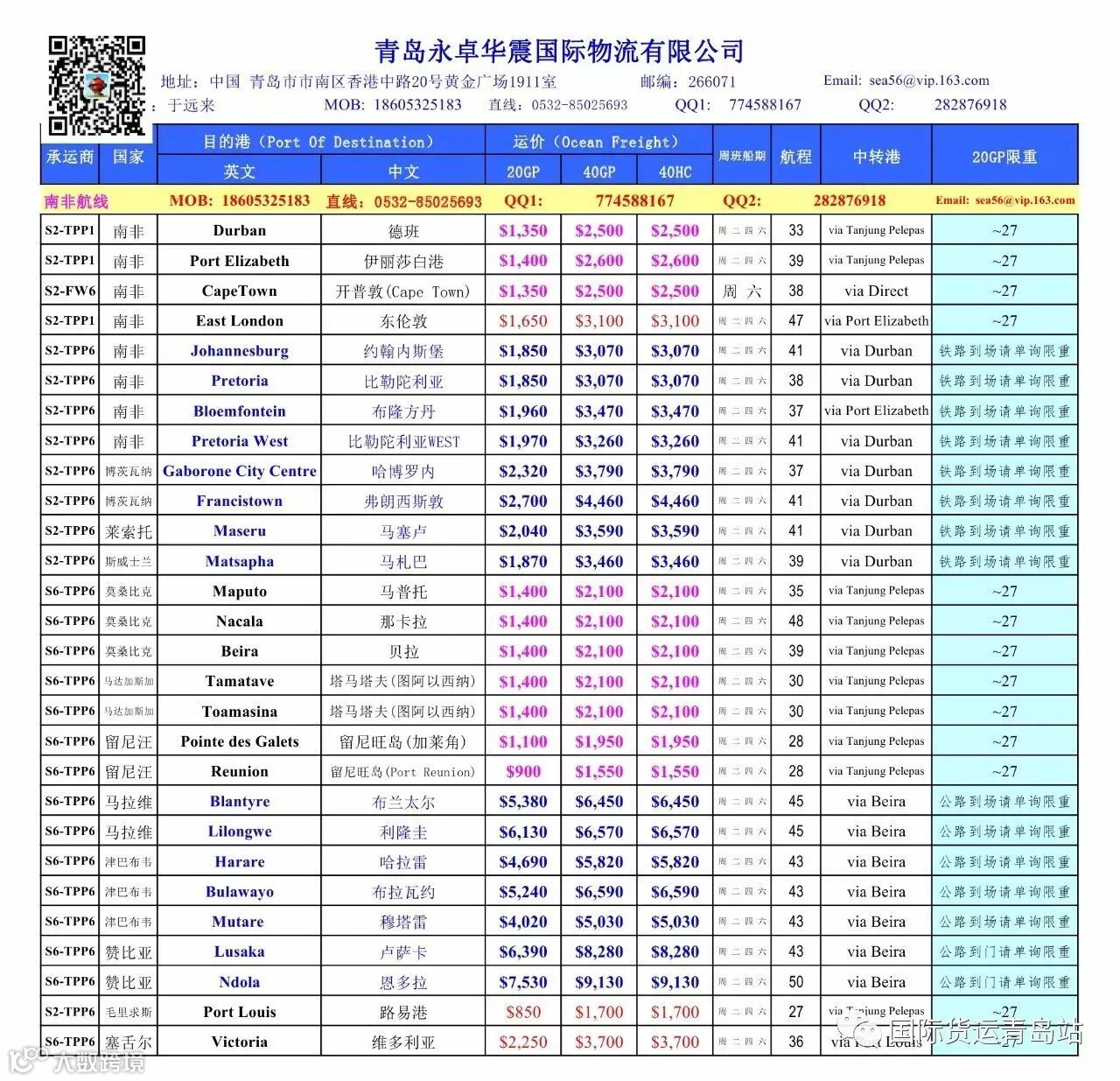 定期更新航线运价,让你随时“掌”握,交流和分享国际货运相关信息。