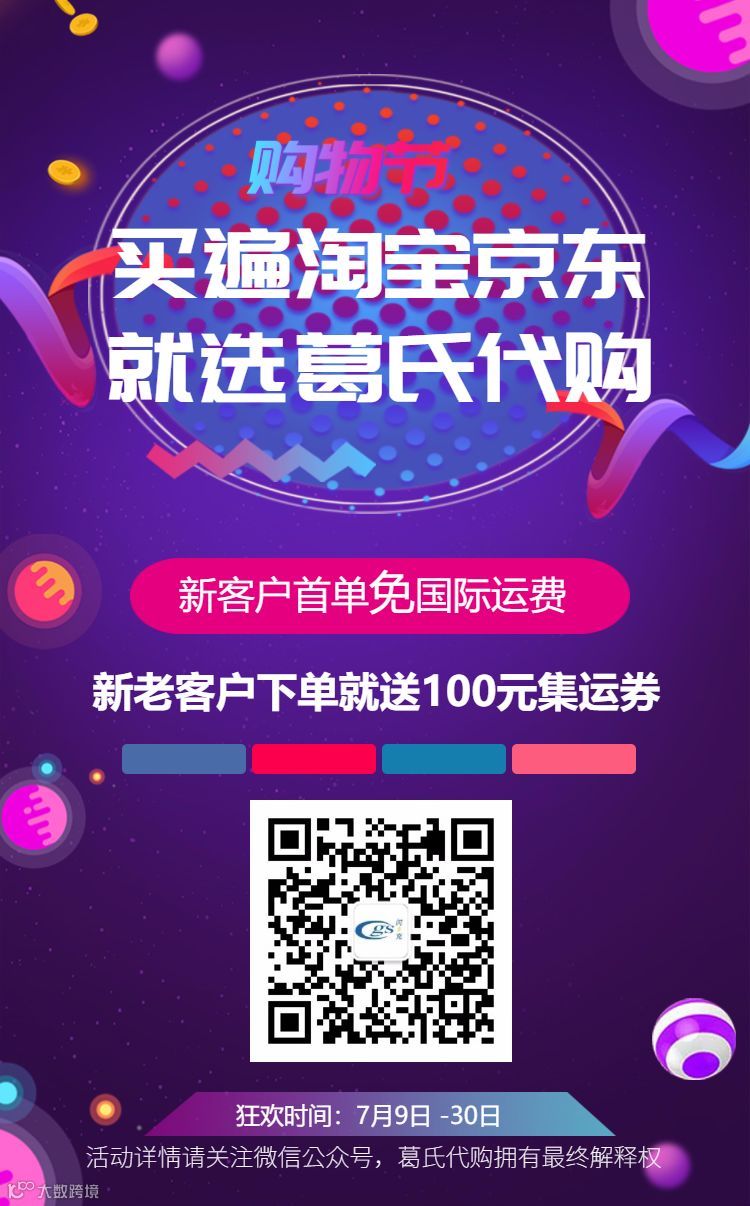 新注册用户首次在葛氏代购进行代购,只需付货款,国际运费完全免费(限30元以内)。