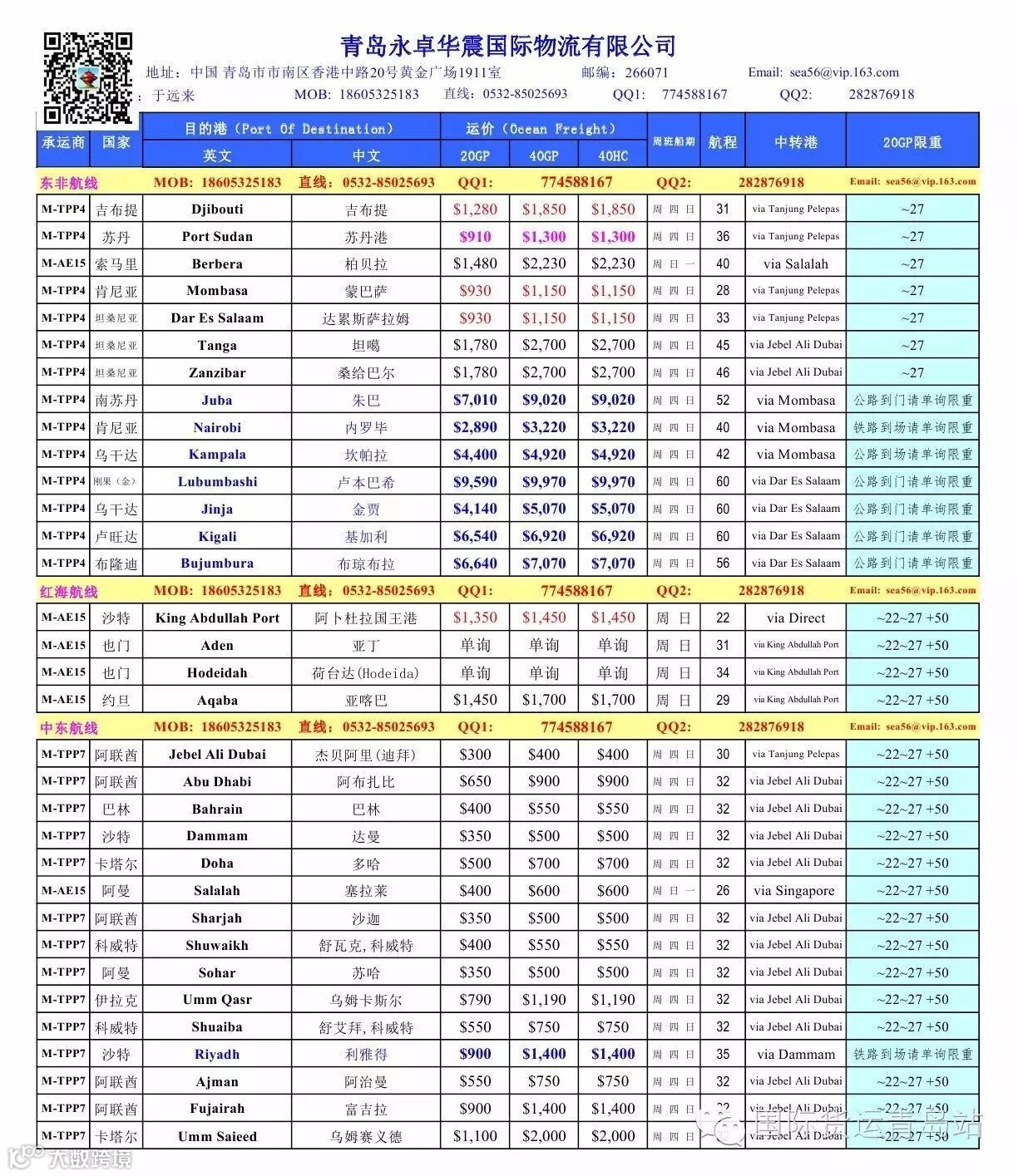 WEEK 21 东非红海中东报价单 苏丹850/1250 蒙巴萨,达累斯800/950