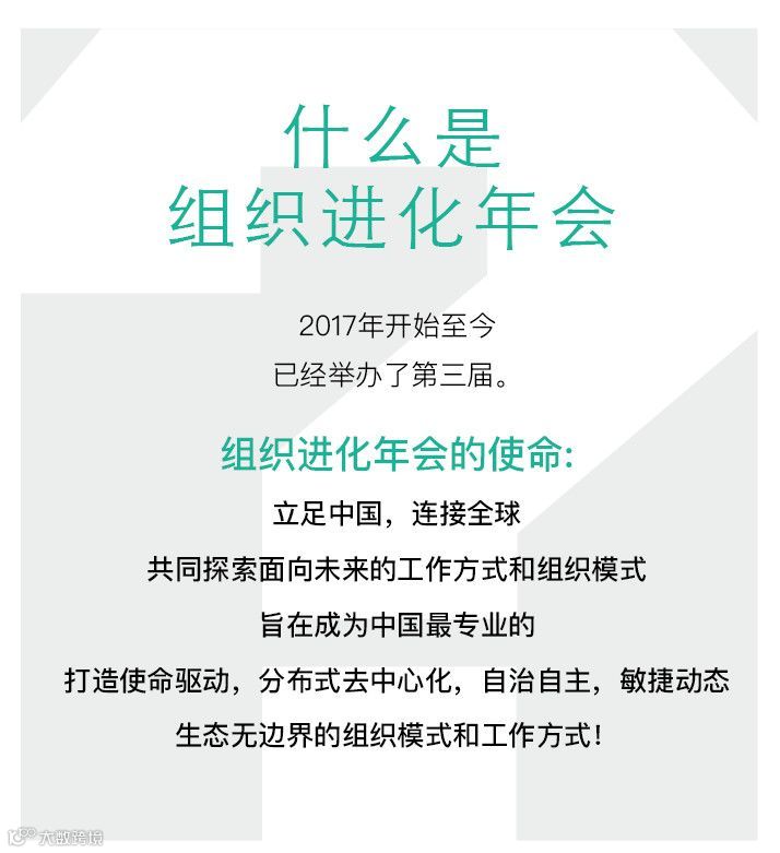每年的进化组织年会上,我们都会邀请全球和国内最一线的组织发展届的一线实践者和理念提出者,进行两天丰盛而富有内容的年会。