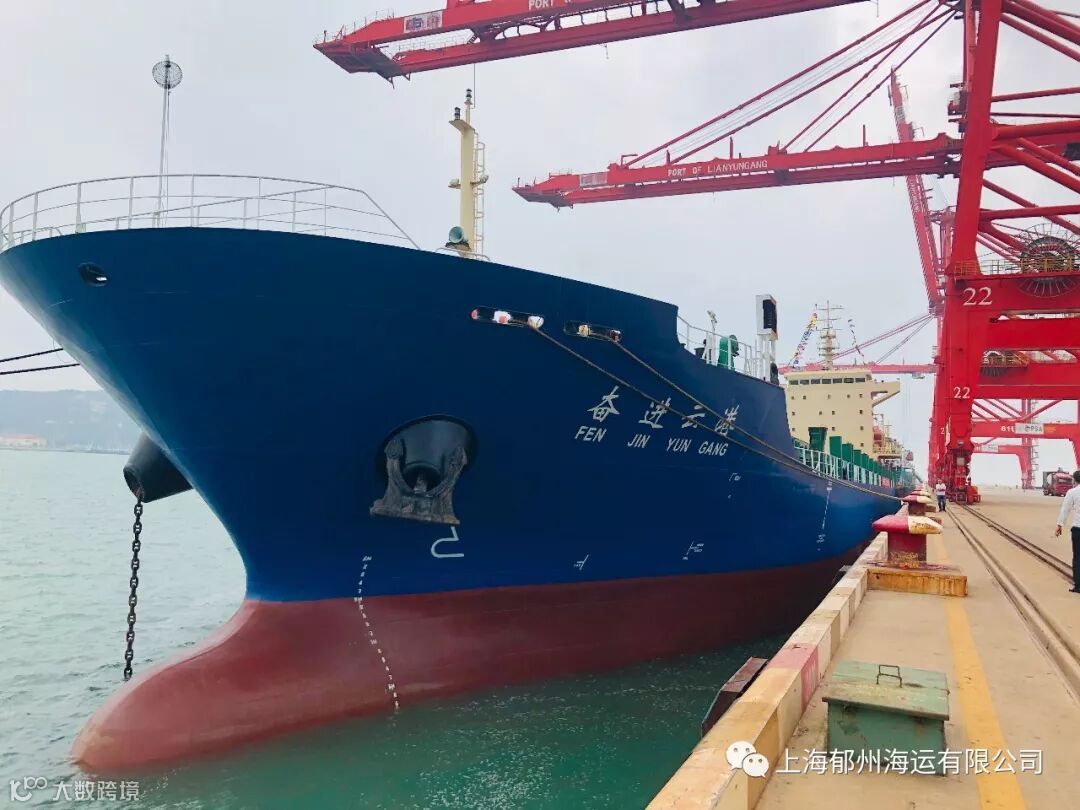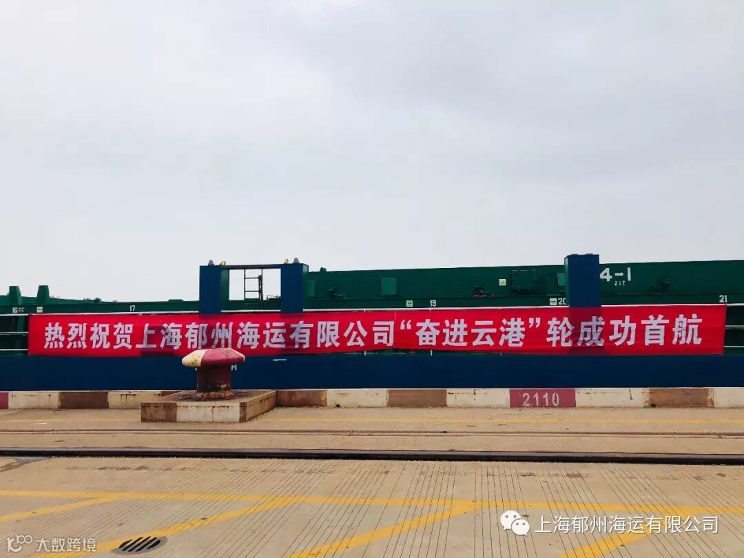 2019年9月10日上午,上海郁州海运公司在连云港25号泊位,举行“奋进云港”轮首航仪式,满载150个大柜、400个小柜集装箱的“奋进云港”将开启连云港—东莞直航。