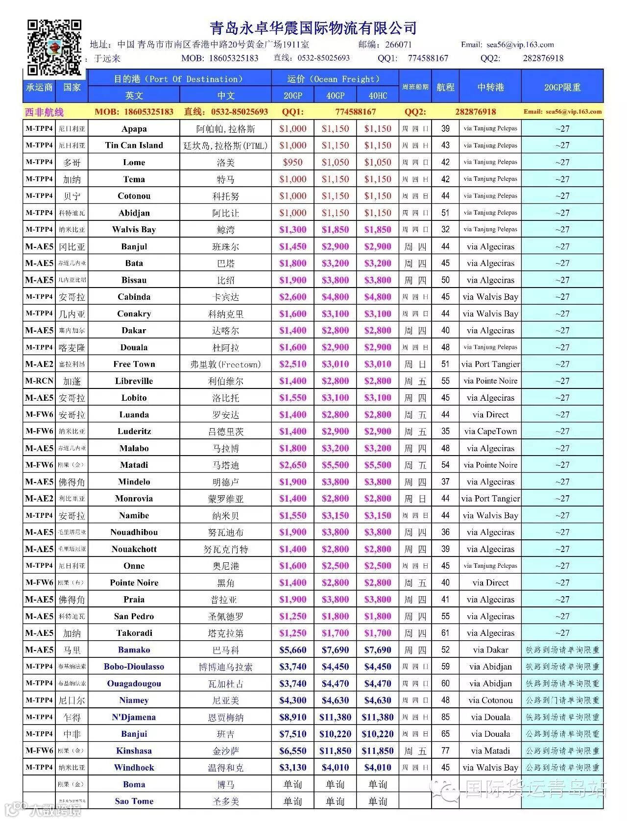 WEEK 17 西非报价单 基本港 品名特价900/1000