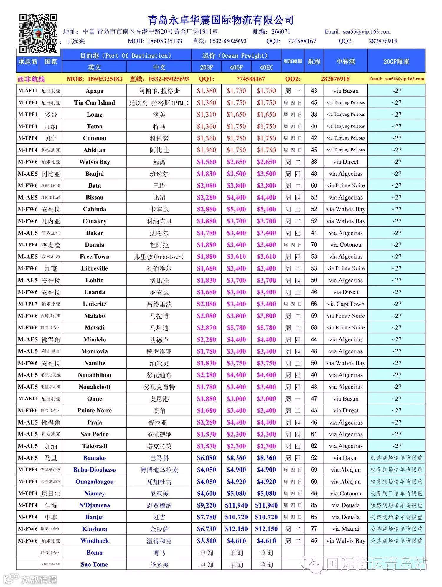 导读:运价仅供参考,本站有解释权。