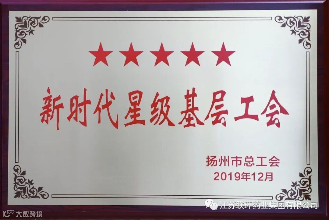 导读:江苏联环药业集团有限公司工会荣获“新时代五星级基层工会”荣誉称号。