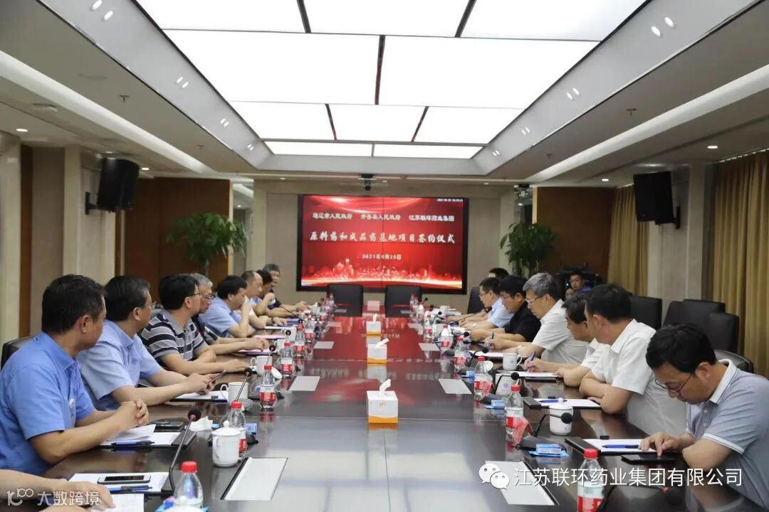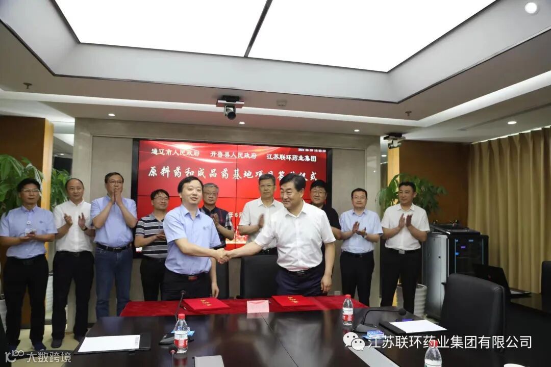 6月20日下午,江苏联环药业集团有限公司与内蒙古通辽市、开鲁县的生物医药合作项目签约仪式在公司第八会议室顺利举行。内蒙古自治区党委常委、通辽市委书记孟宪东,副市长郝明胜,原开鲁县委书记赵长勇以及通辽市、开鲁县相关领导,扬州市国资委党委书记、主任王庆伟,联环集团党委书记、董事长、总经理夏春来,副总经理戴华侨,联环股份总经理钱振华,联博药业总经理黄庆申,联环股份党委副书记涂斌出席签约仪式。