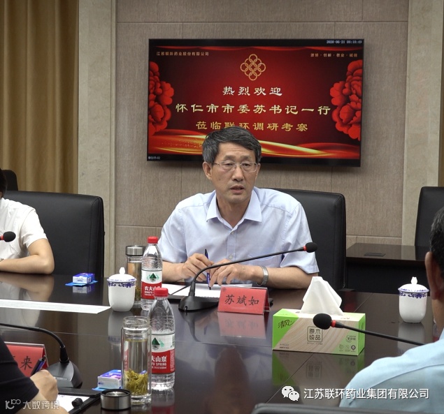 会上,联环药业董事长夏春来、联博药业董事长陆波分别对苏书记一行百忙之中莅临指导表示热烈欢迎。大同同星抗生素有限公司总经理张凤新、怀仁生物分公司总经理曹君书针对重点项目规划、发展现状和企业在怀仁发展过程中遇到的难题作了简要汇报。苏书记对联环药业近几年的快速发展感到惊叹,对大同同星怀仁项目规划表示充分肯定,他表示将全力以赴帮助解决项目推进过程中的难点问题,全力服务企业发展,也诚挚邀请联环药业在怀仁积极寻找优质合作伙伴,强强联手,进一步做大做优联环药业,为早日实现“百强联环、百亿联环、百年联环”的美好愿景而努力奋斗。
