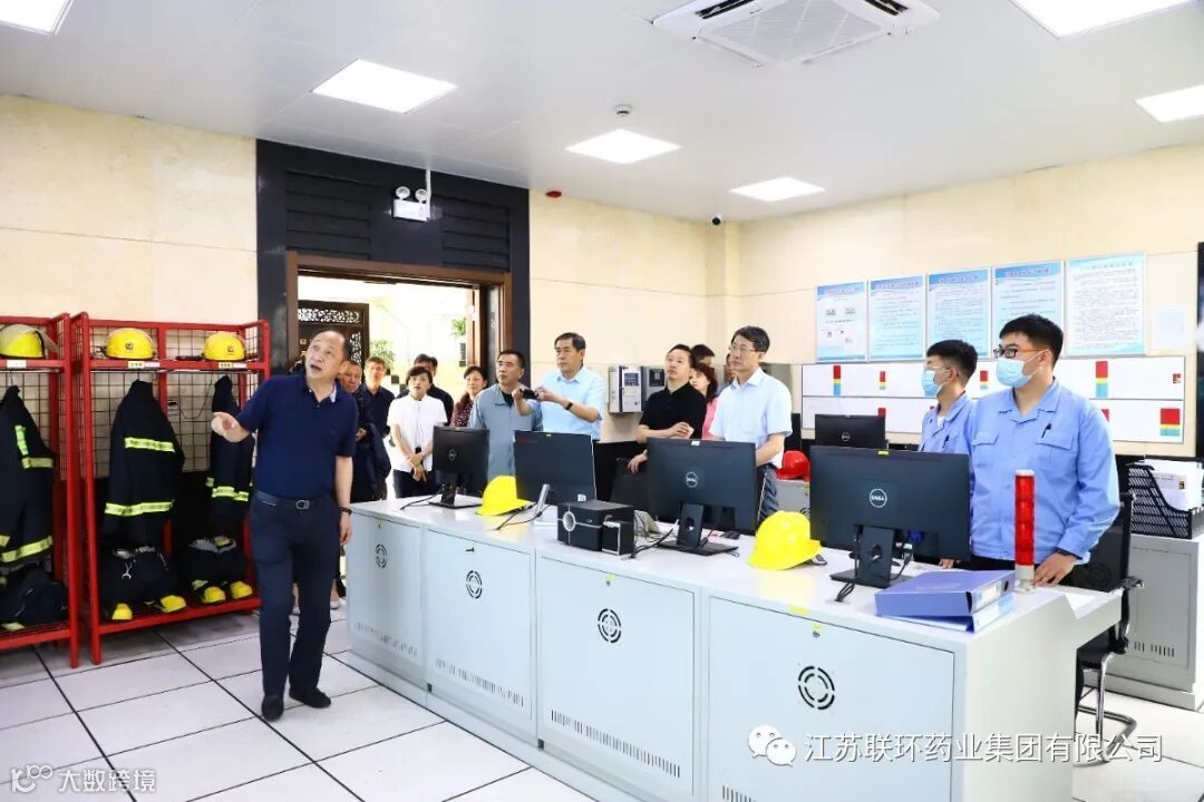 在扬州联博药业有限公司,苏书记一行在联博药业董事长陆波、总经理黄庆申的陪同下先后对公司生产现场、总控室进行了实地考察。据黄总经理介绍,联博药业总控室采用了最新的智能化DCS、SIS等控制系统,实现了安全环保实时监控、远程自动化控制切断、工艺参数调整与控制。