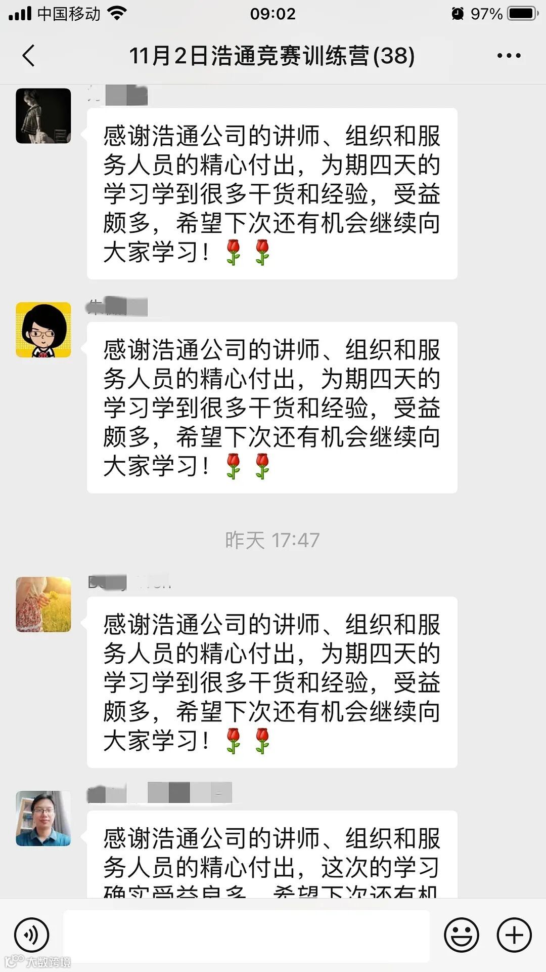 本次培训后我们收到了学员们的反馈,他们表示非常感谢授课老师与组织方,在课堂上收获到了很多新知识,今后会更努力积极备战比赛!我们在此祝愿所有参赛选手都能在比赛中发挥实力,取得理想成绩,在未来学有所成,展翅翱翔!