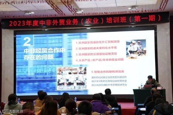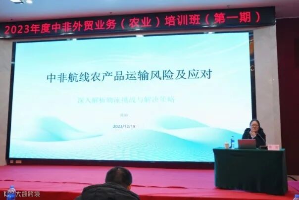 培训班邀请了负责对非业务的政府相关领导、行业领域资深专家学者授课,围绕“中非贸易形势研判及政策解读”、“中非航线中运输农产品遇到的风险及应对措施”等主题展开讨论和交流。