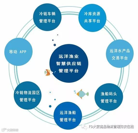 通过这6大功能性平台,对远洋渔业产业链上的关键资源进行有效的状态信息获取,实现对“车、船、渔、港、库”等物流资源的优化配置。