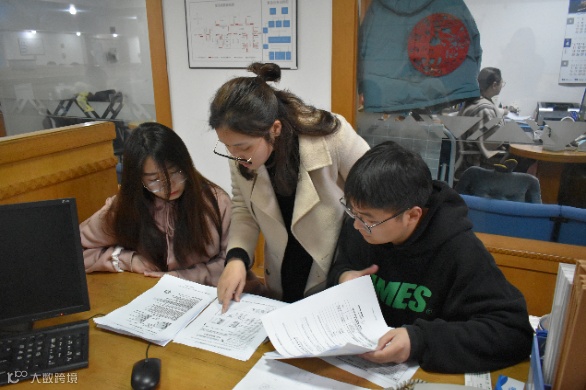 图中为指导老师为学生们结合公司案例巩固理论知识