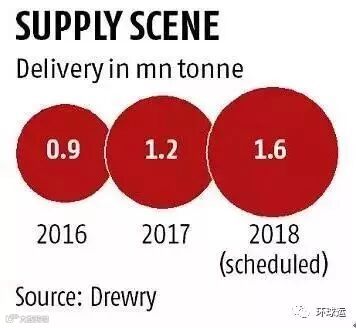 然而,对印度而言,由于部分大宗商品也被集装箱化,导致国内市场对集装箱业务的需求增加,预计影响不大。“在印度,钢铁,废金属甚至铁矿石正在集装箱化。基于此,预计2018年全球运力过剩对印度的集装箱业务的影响有限。”Care Ratings高级经理Hitesh Avchat表示。