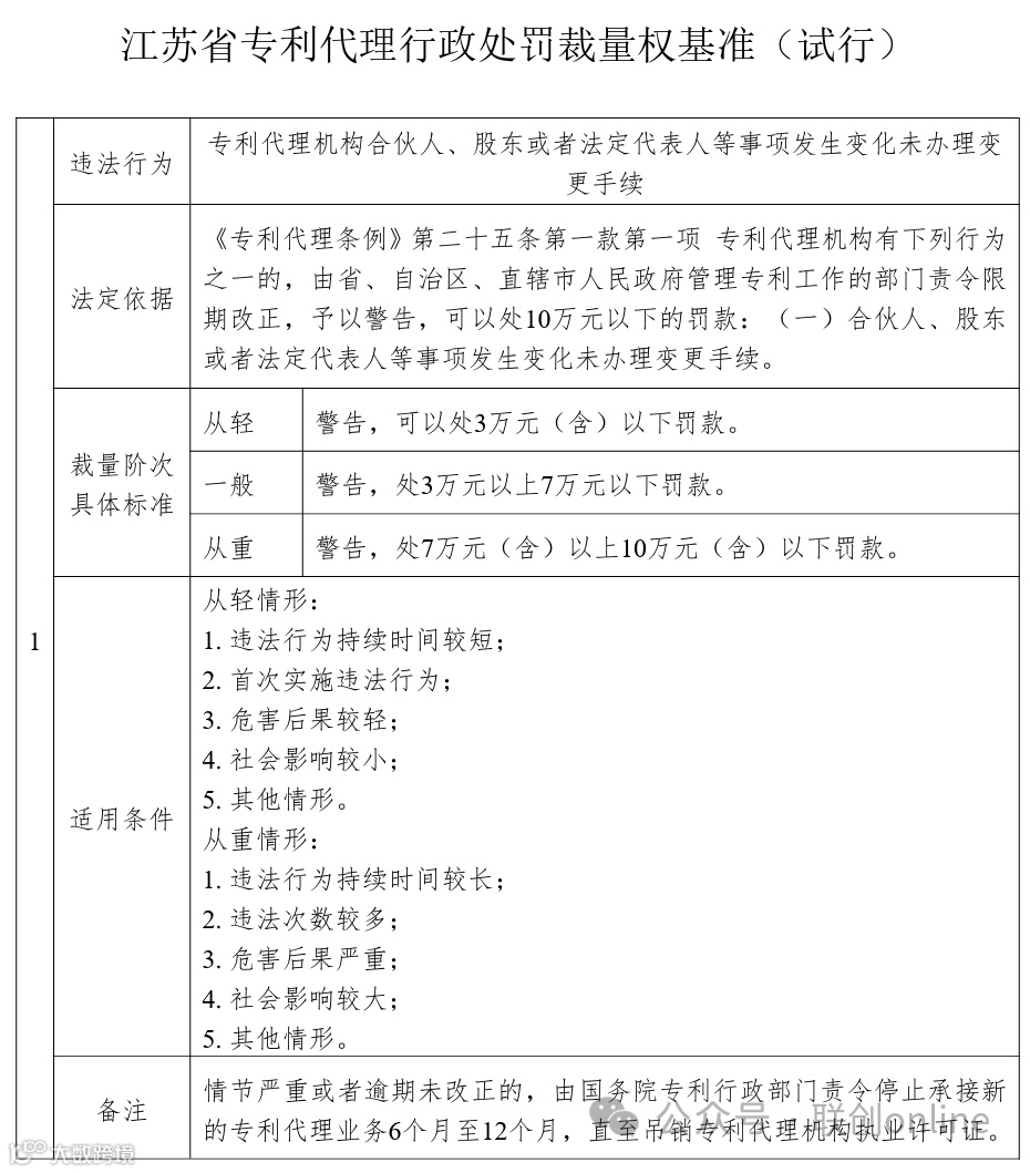 附:江苏省知识产权局关于印发江苏省专利代理行政处罚裁量权基准(试行)的通知