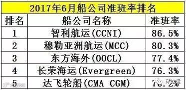 在6月份船期准班率表现最好的是汉堡南美旗下的智利航运(CCNI),其6月的准班率达到了86.5%