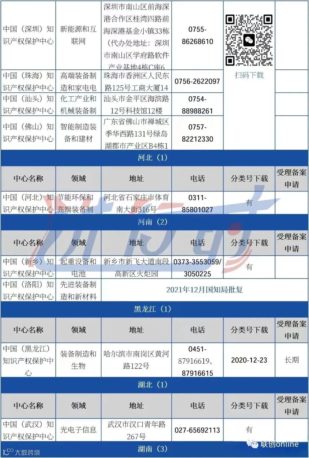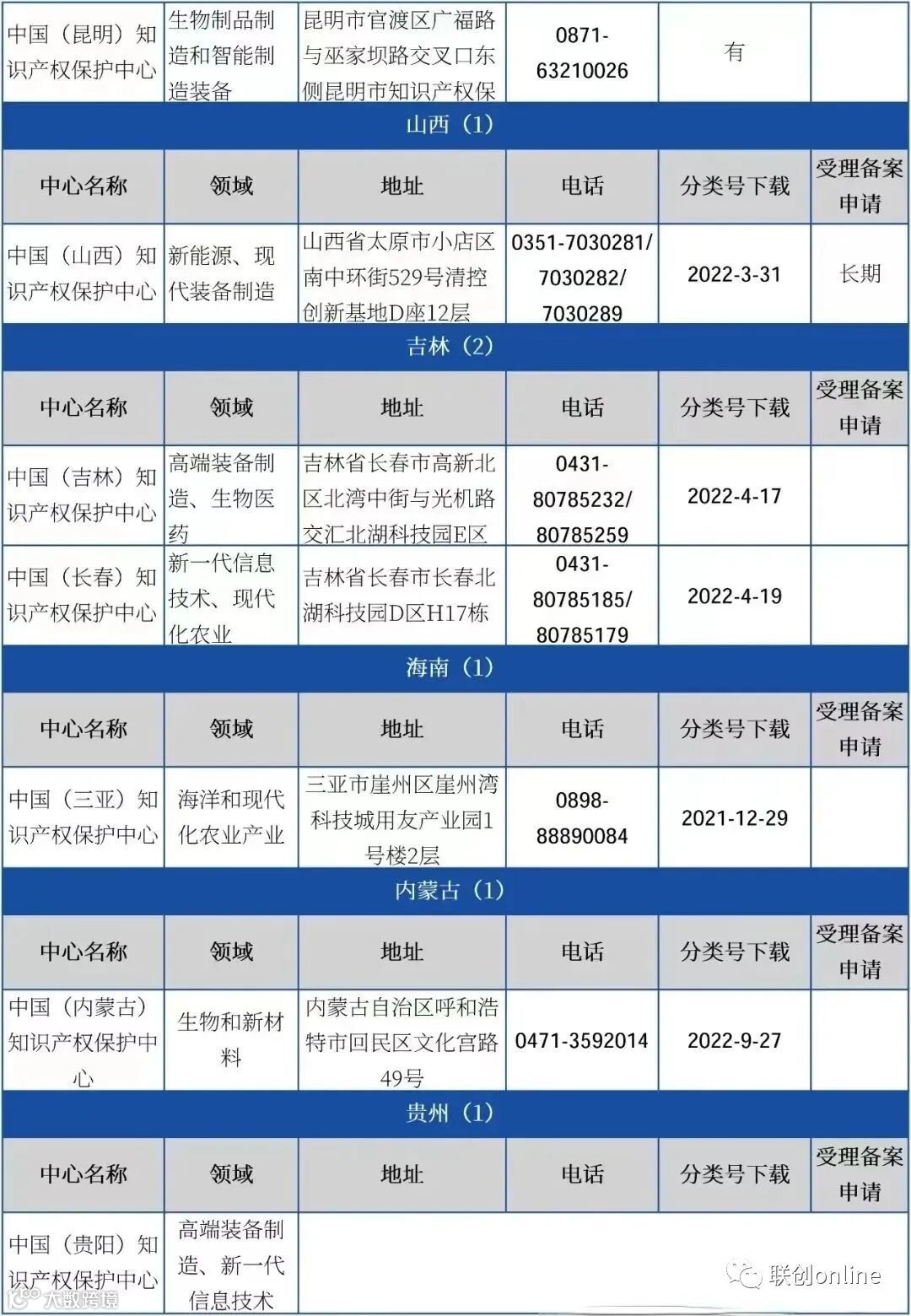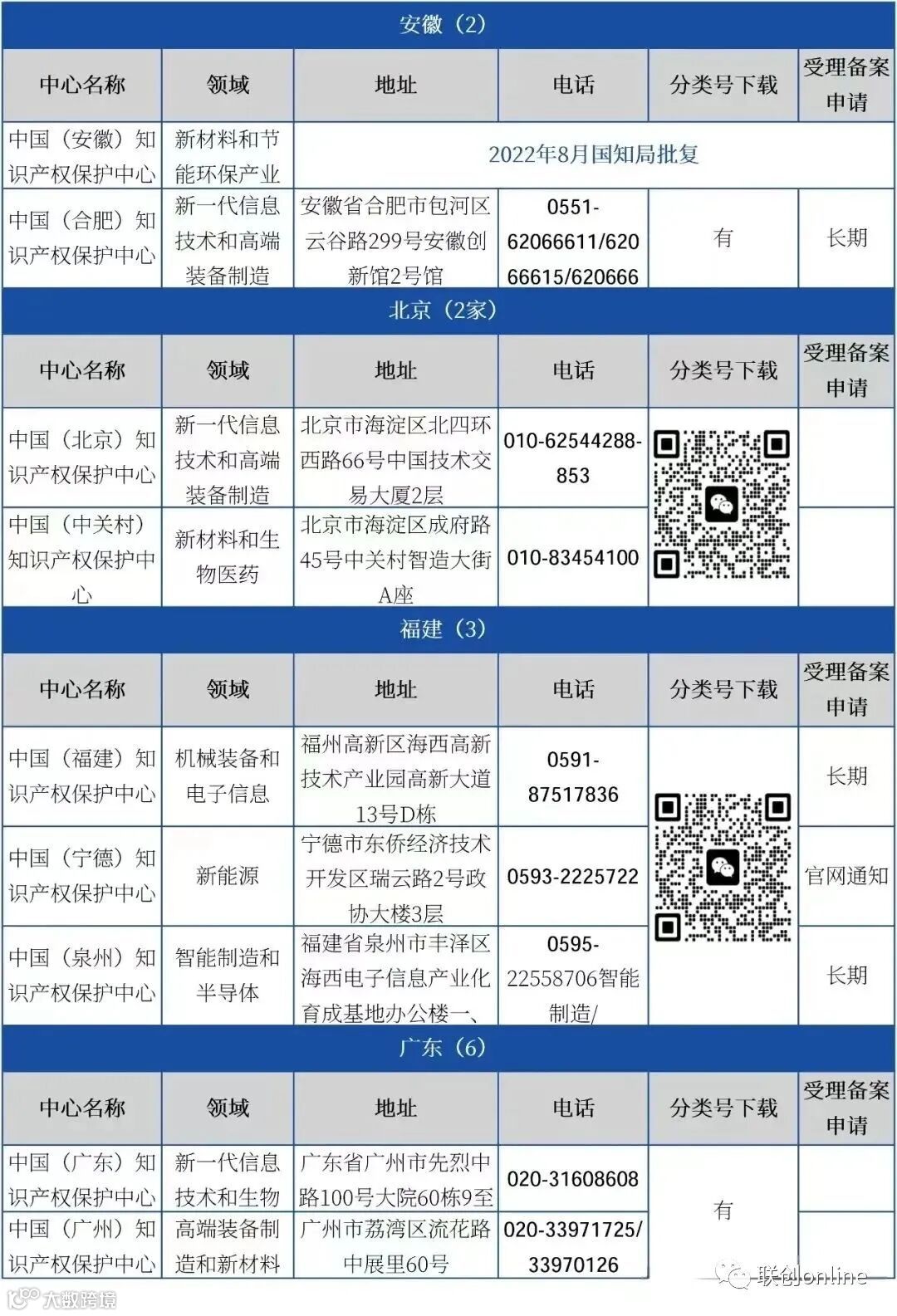 全国61家知识产权保护中心信息及专利分类号具体变化内容详见如下: