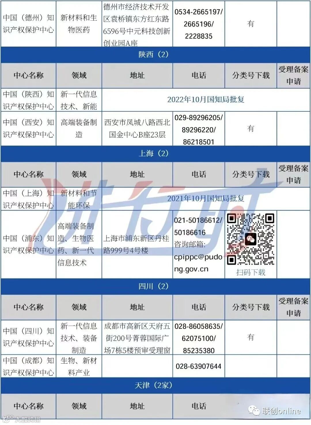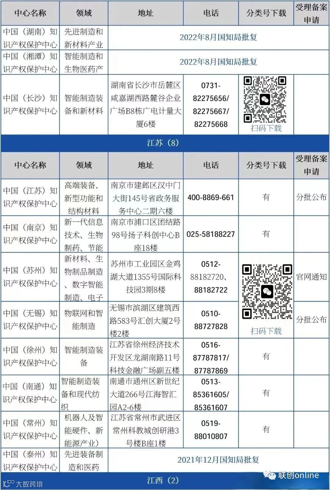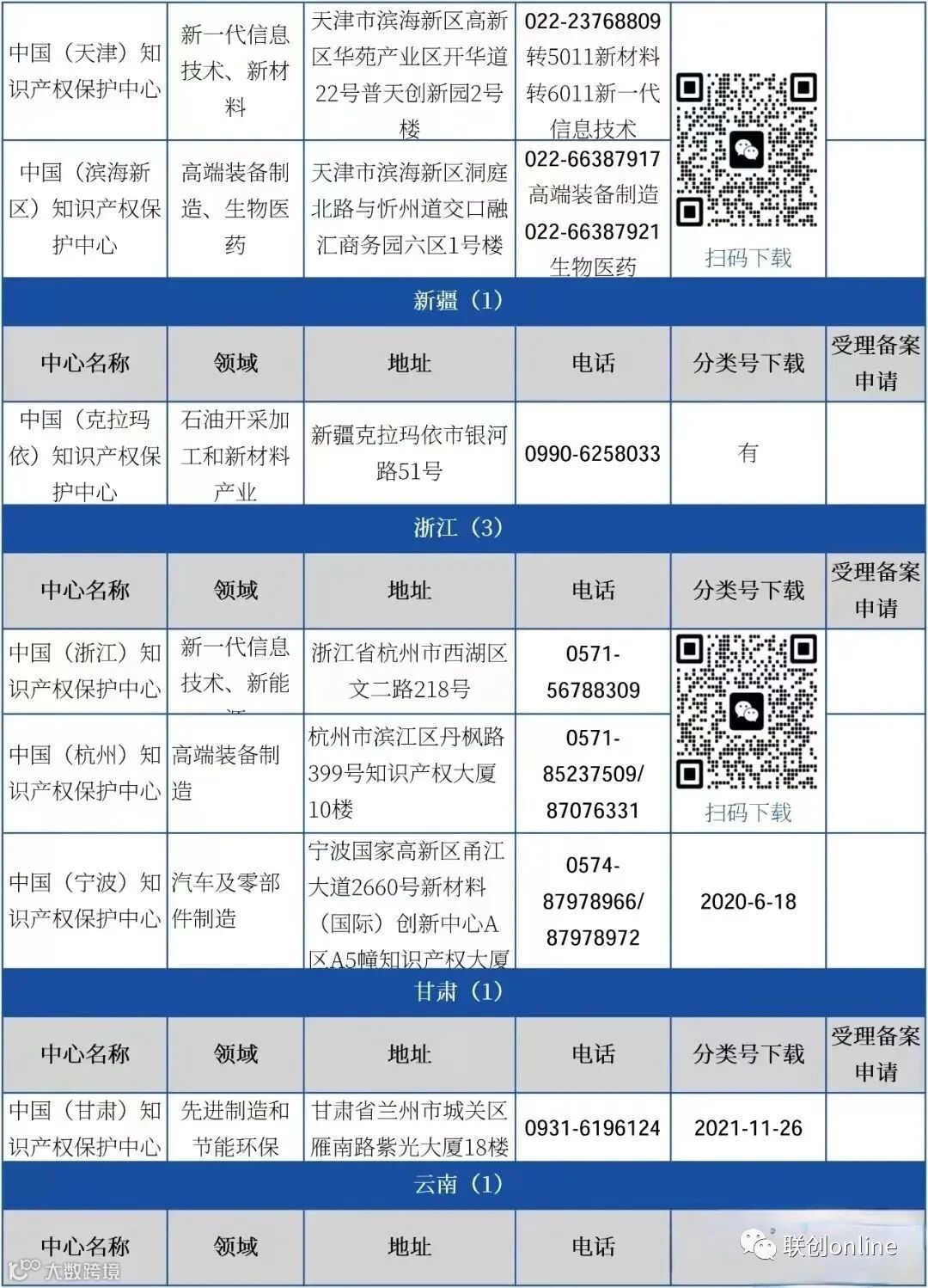 全国61家知识产权保护中心信息及专利分类号具体变化内容详见如下: