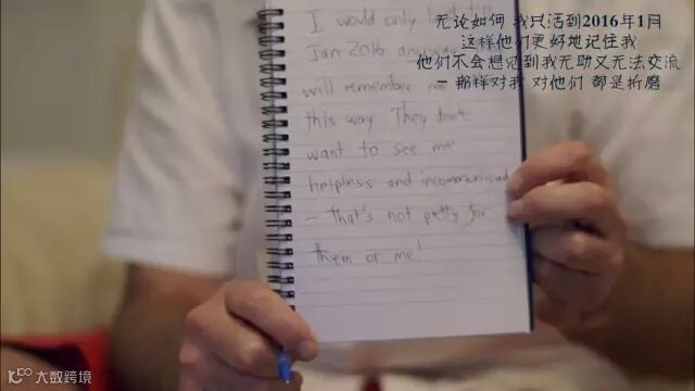 半年过去了,他的病情逐渐恶化...当这部纪录片开始拍摄的时候,他已经口齿不清..很多时候必须要用一个打字机来“替”他说话
