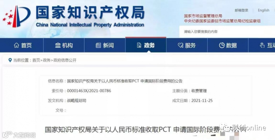 根据国家知识产权局与世界知识产权组织签订的《关于<专利合作条约>(PCT)费用汇交的谅解备忘录》,自2021年12月1日起,国家知识产权局将按世界知识产权组织公布的人民币标准收取PCT申请国际阶段费用,不再以瑞士法郎标准进行折算。上述人民币标准将在国家知识产权局网站专利合作条约(PCT)专栏另行通知。