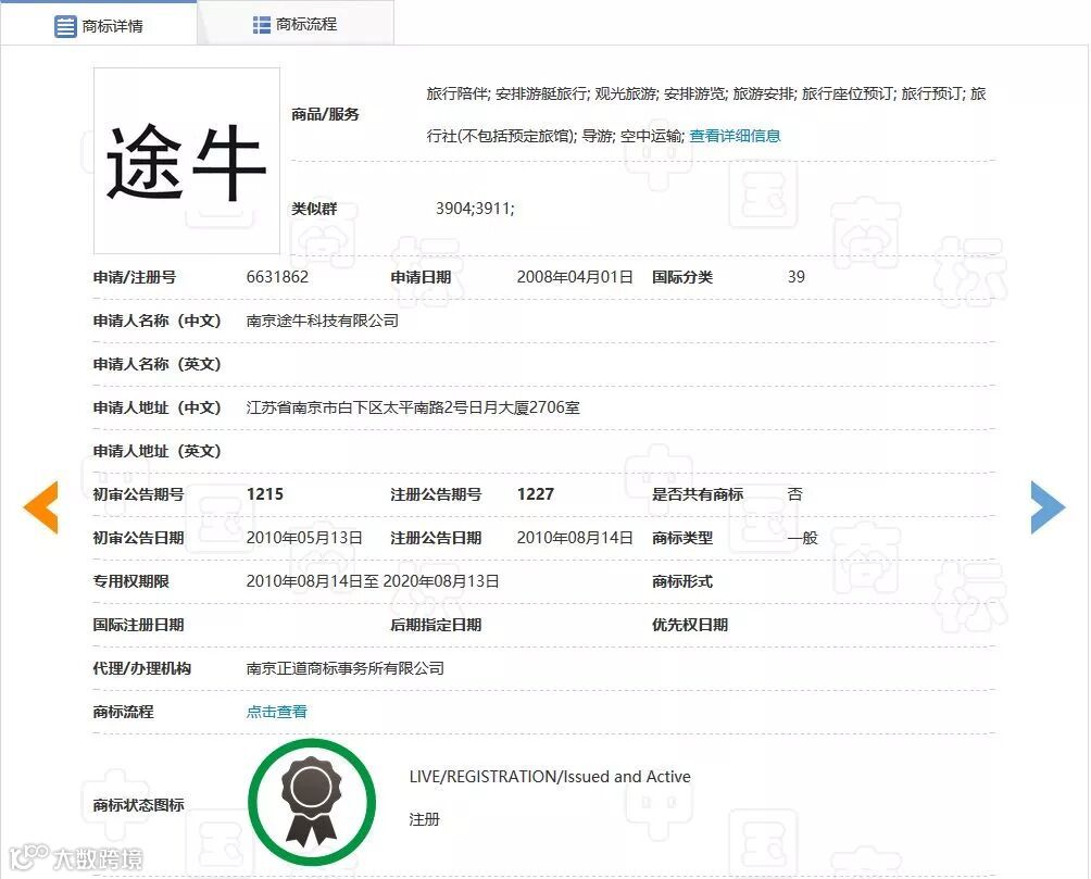 要旅游, 找途牛!据了解,南京途牛科技有限公司对第16004180号“途牛”商标提出无效宣告请求。称:争议商标是对申请人第6631862号“途牛”商标的复制和抄袭。