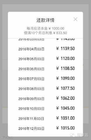 按日计算利息,日利率为0.05%,支持提前还款。目前支持5个月、10个月、20个月三种还款期数,每月3日还款。