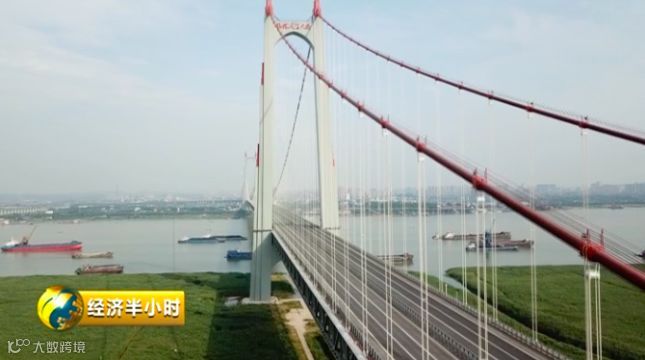 位于湖南省岳阳市的杭瑞洞庭大桥,全长23.118千米,2018年正式通车,洞庭湖水经过这里连通长江。央视财经频道《经济半小时》栏目记者在这里看到工人们给大桥安装电涡流阻尼器,这是超长大桥的必备组件,具有减振作用,能承受150吨的力。杭瑞洞庭大桥需要安装8根这样的阻尼器。