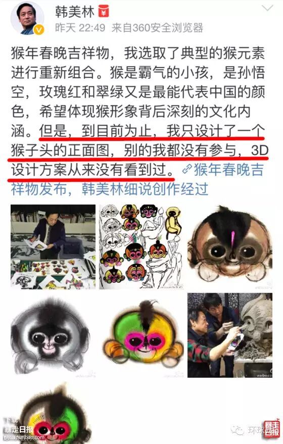 对此,设计者韩美林称这确实是猴年春晚吉祥物,该作品是在选取了典型的猴元素进行重新组合后完成的,还称这猴是霸气的小孩,是孙悟空!!!
