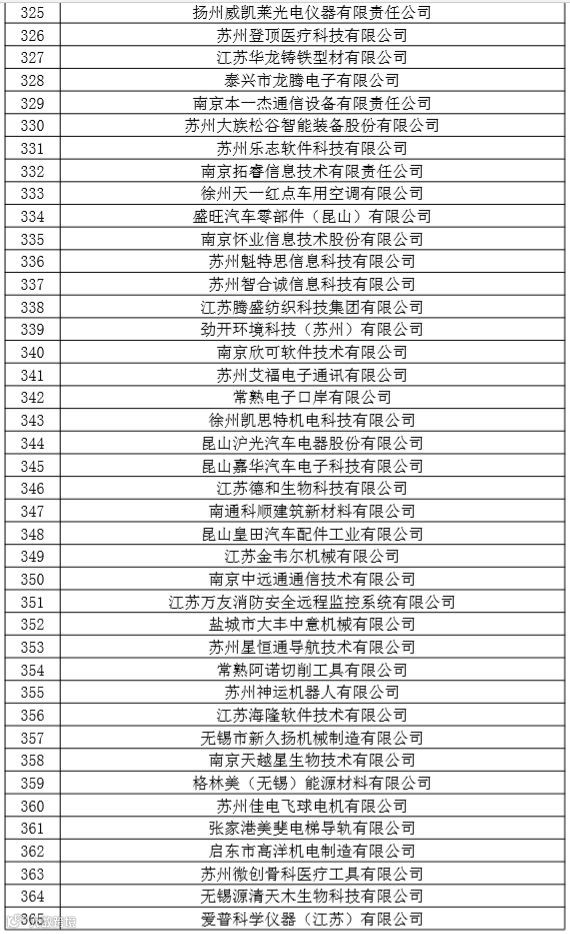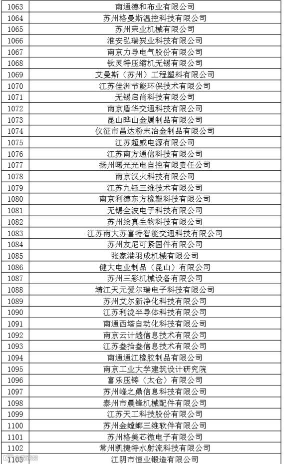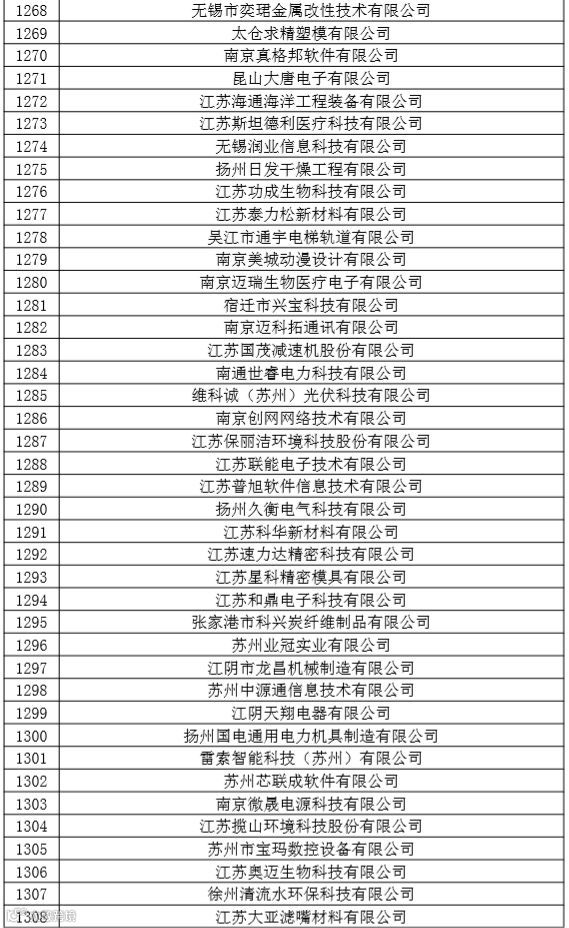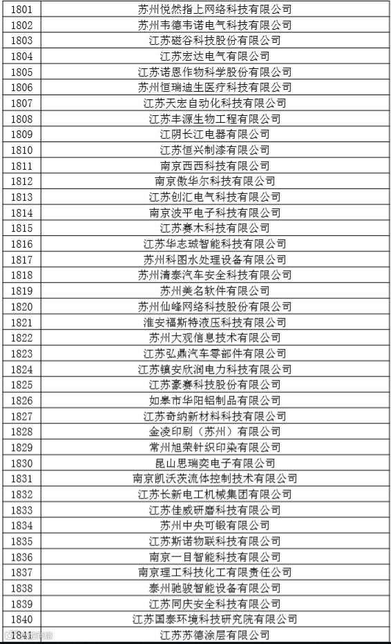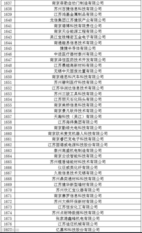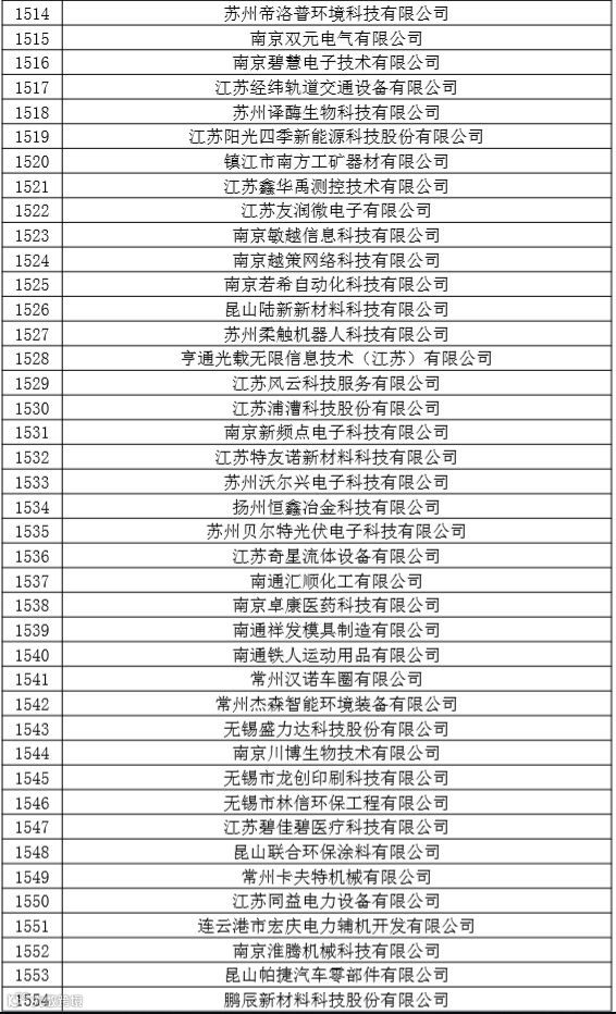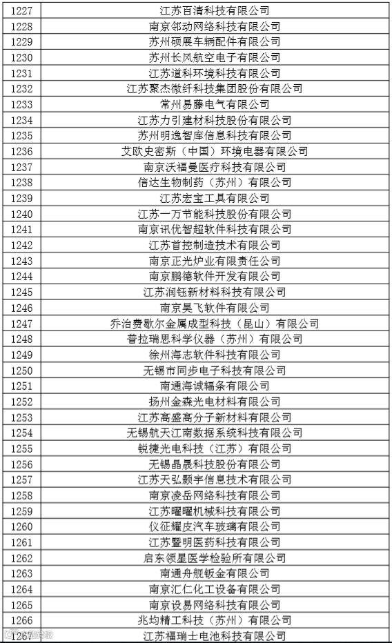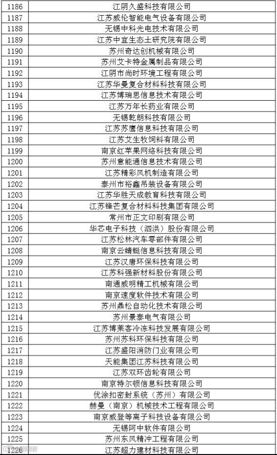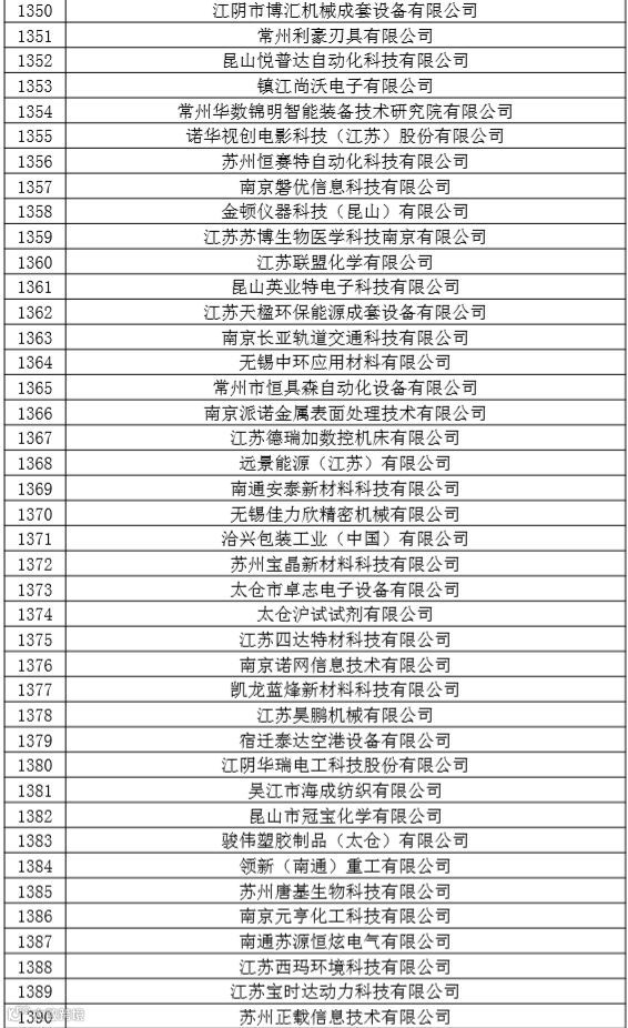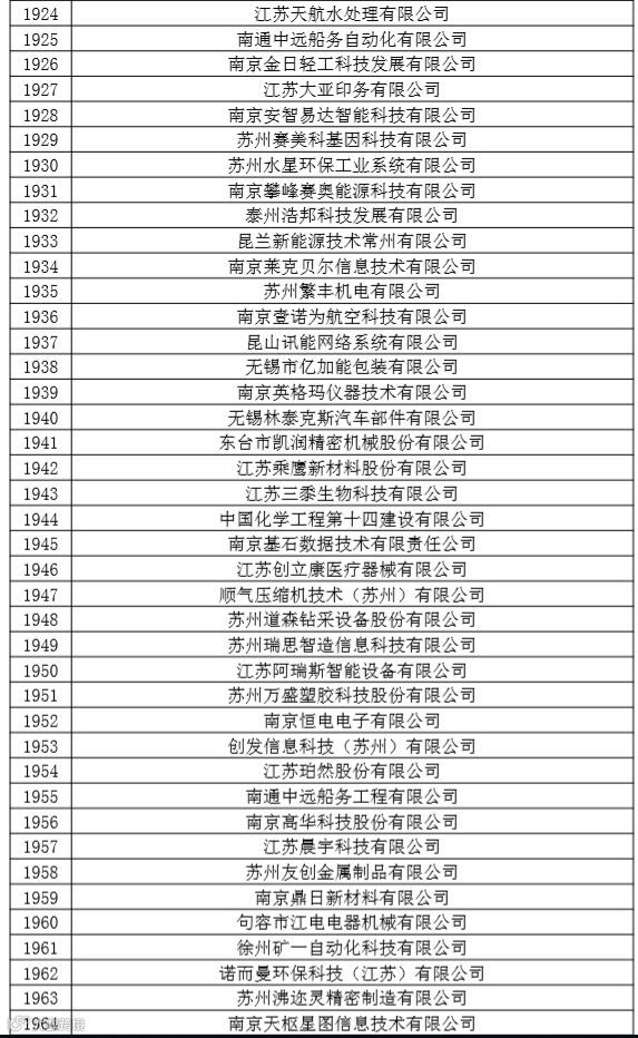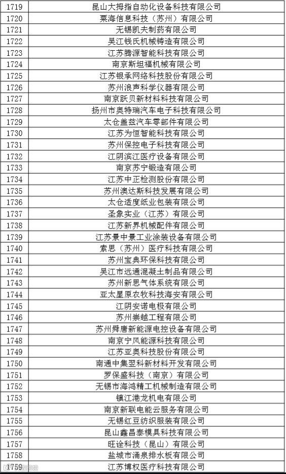 导读:以下为江苏省2019年第一批拟认定高新技术企业名单