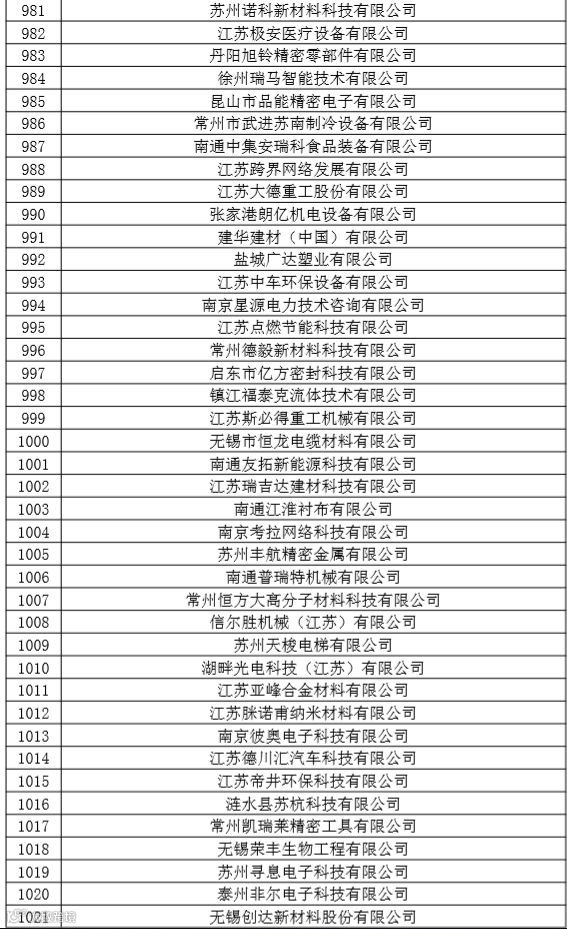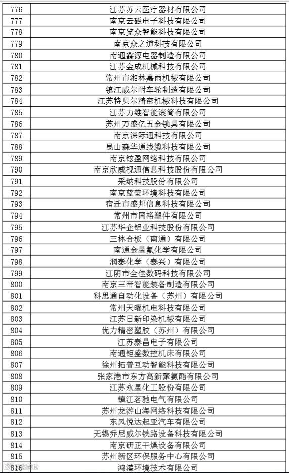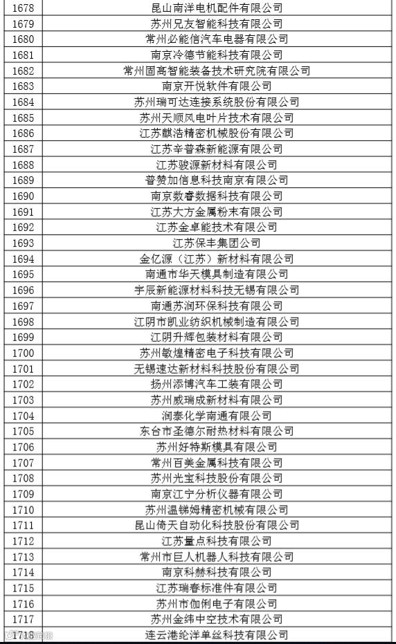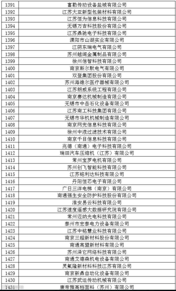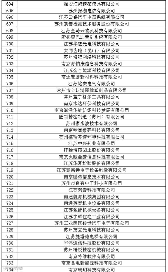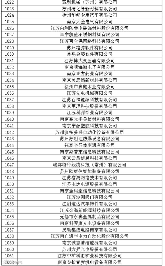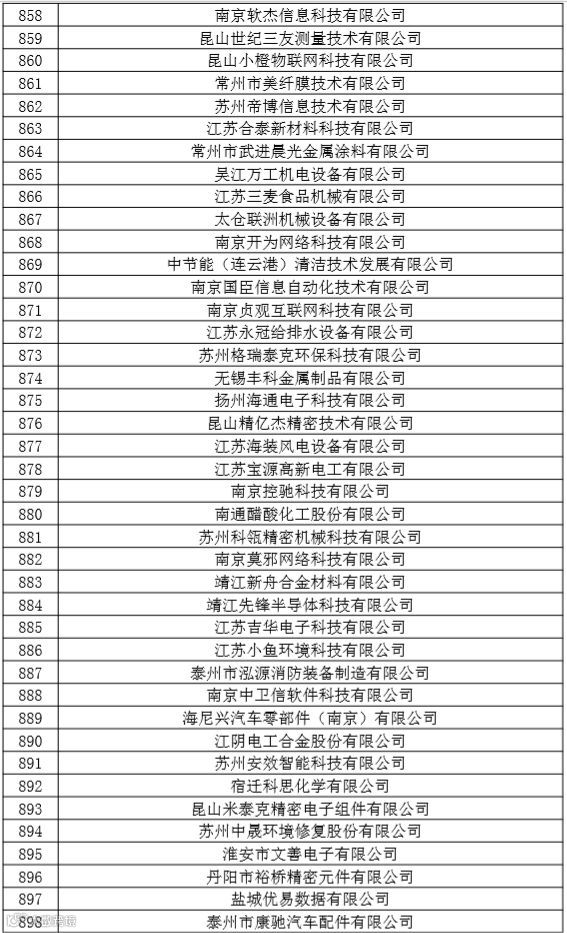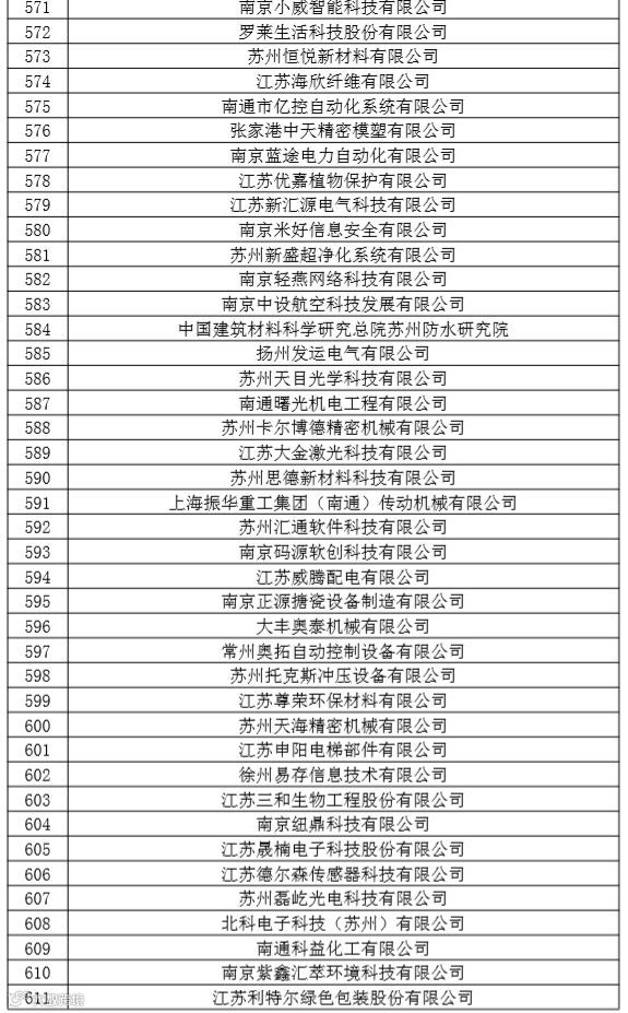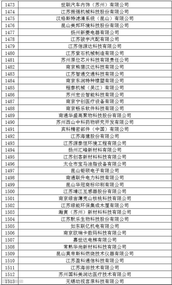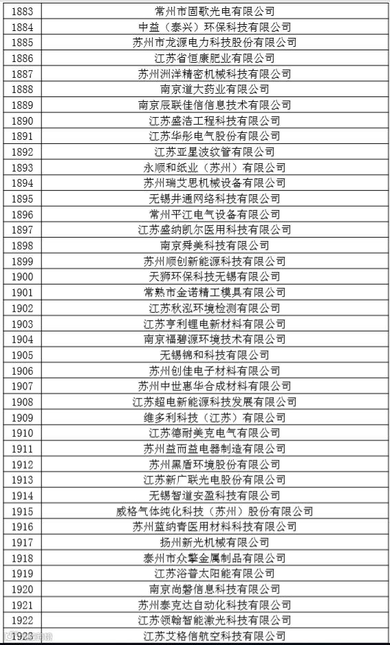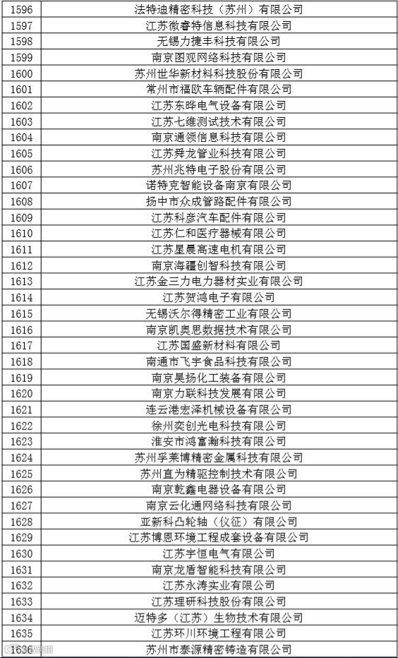 导读:以下为江苏省2019年第一批拟认定高新技术企业名单