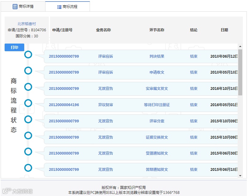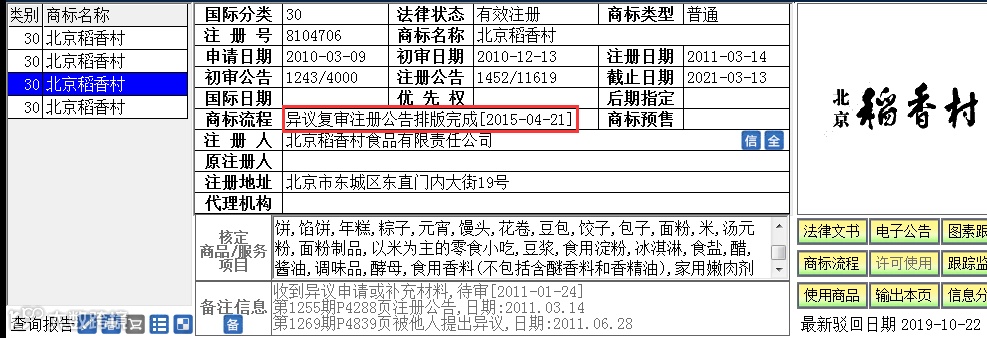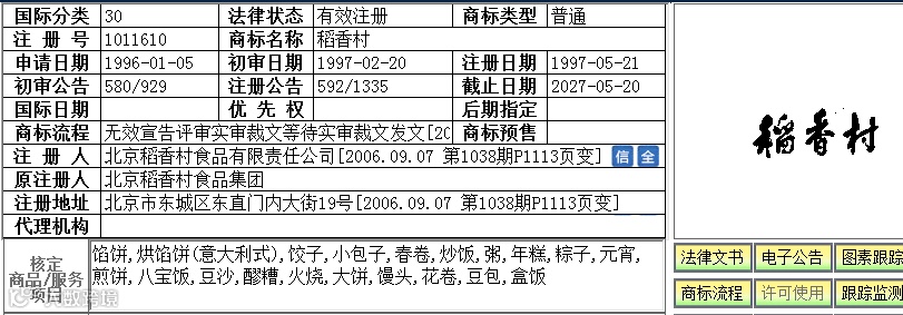 《商标法》第三十条规定,商标注册遵循在先申请原则,在后申请的商标若与他人已注册的商标相同或者近似并使用在相同或相似的商品服务上,在后申请的商标不予注册。此前,糕点类已有苏稻公司“稻香村”商标。苏稻针对糕点类“北京稻香村”商标也已向法院提起无效申请,案件结果暂无从查出。