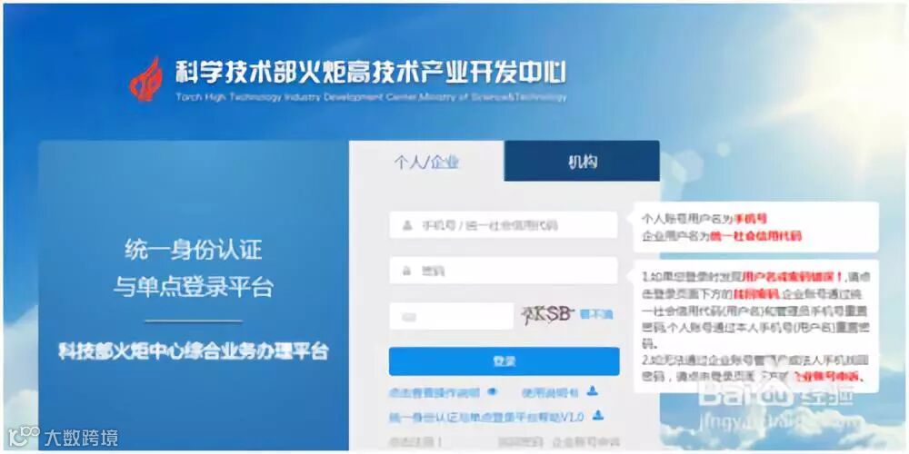 在科学技术部火炬高技术产业开发中心网站上输入用户名、密码登录进去,并选择高新技术企业认定右侧的“我要办理”。进入高新认定网站。