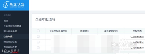 选择左侧导航栏中的“企业年报”,可以浏览历史填报的企业年报,每年上半年填报一次高新技术企业年报。