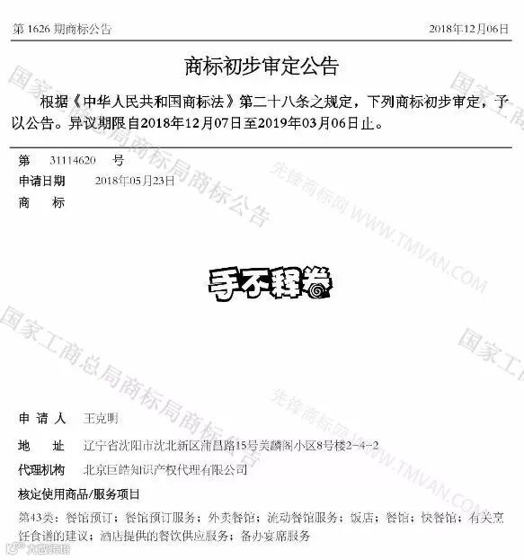 这类型的商标还有“两只蛋;左利手;简体;要求;永久”等,是不是有一种“原来还能这样?”的赶脚,不过,真的可以这样。大概就是“把简单的事做好就是不简单,把平凡的词用好就是不平凡”吧。之前好多同行说,客户在全部45个类别申请了非常简单的2字词语或4字成语,都是词典中的固有词汇,在45个类别无一驳回,也印证了此点。