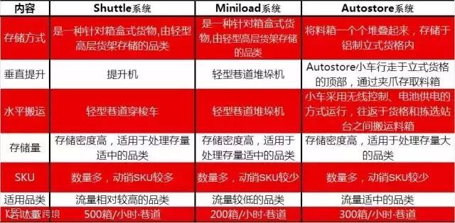目前主流的四种货到人设备包括:Shuttle,Autostore,Miniload和自动货柜。