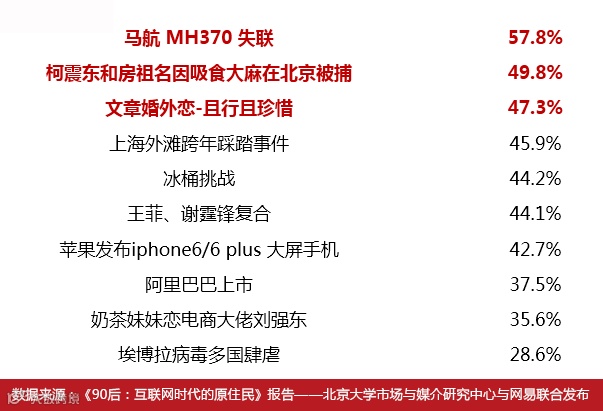 受访者最不关心的是政治新闻,最关注是公共事件和娱乐八卦。90后喜欢用女汉子、萌萌哒、我也是醉了,就这么任性这些网络热词,更加注重及时行乐的感觉。互联网上成长起来的90后有相对宽松、自由和丰富的物质和精神生活,更具创造力、想象力、表现力,追求个性化、崇尚自由。他们选择性地关注了更能满足这些特质的内容。网络热词快速风靡、社交网络热点事件、暴走漫画大受欢迎、花漾字体拥有市场、弹幕视频一夜爆红……这些都迎合了90后的娱乐至上注意。网易新闻客户端在受访者中受到欢迎,很大部分原因正是因为它拥有网易跟帖、轻松一刻等娱乐化资讯内容。