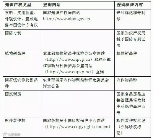 (2)知识产权有效性的查询验证方式: