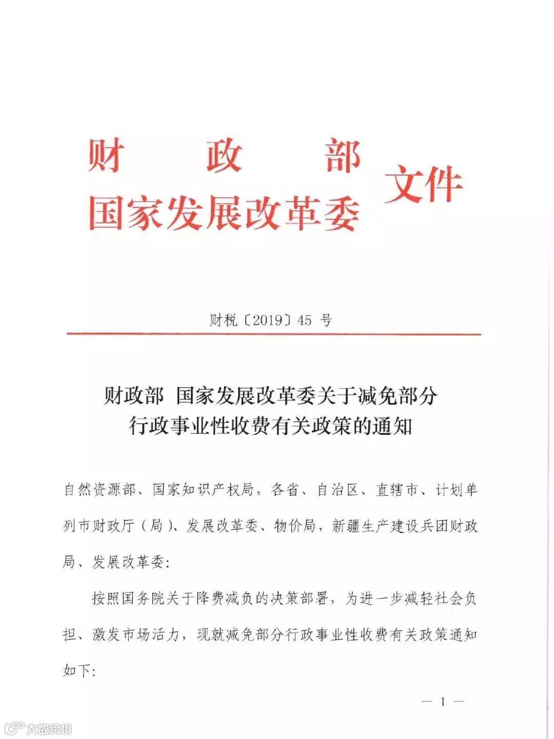 2019年5月,财政部、国家发改委发布《关于减免部分行政事业性收费有关政策的通知》,减缴项目自2019年7月1日起执行。
