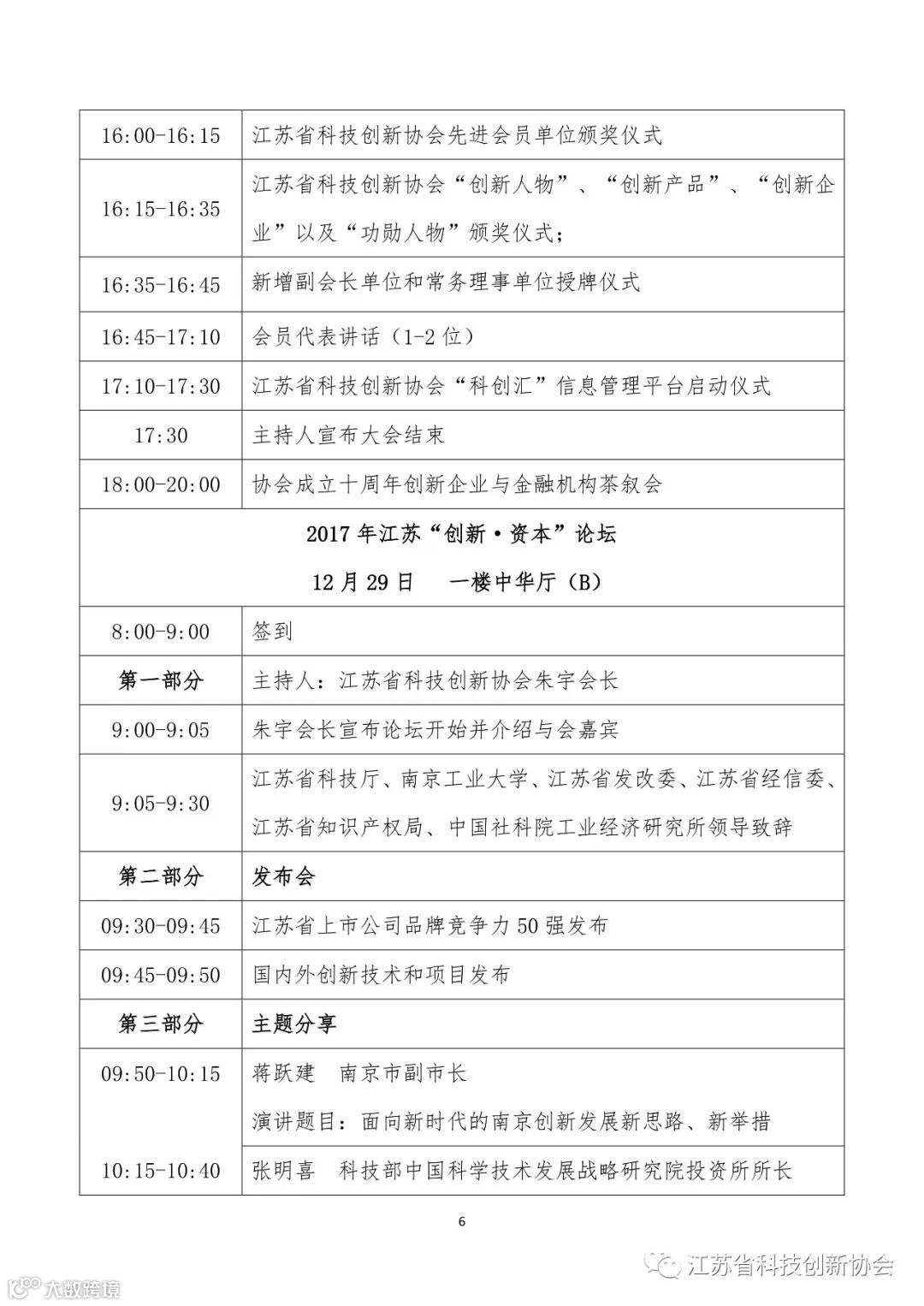【十周年大会】江苏省科技创新协会十周年大会暨2017年江苏“创新·资本”论坛议程