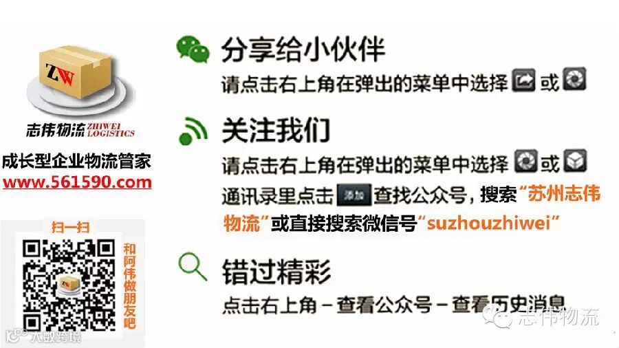 志伟物流:(微信号:suzhouzhiwei),成长型企业的物流管家,让物流省事、省心、更省钱!