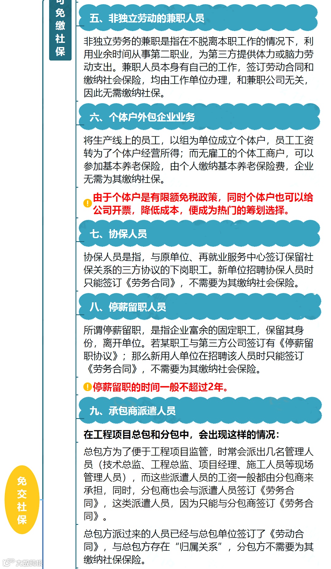 话不多说,今天老师和大家一起梳理下,看看哪些人可以合规免交社保!