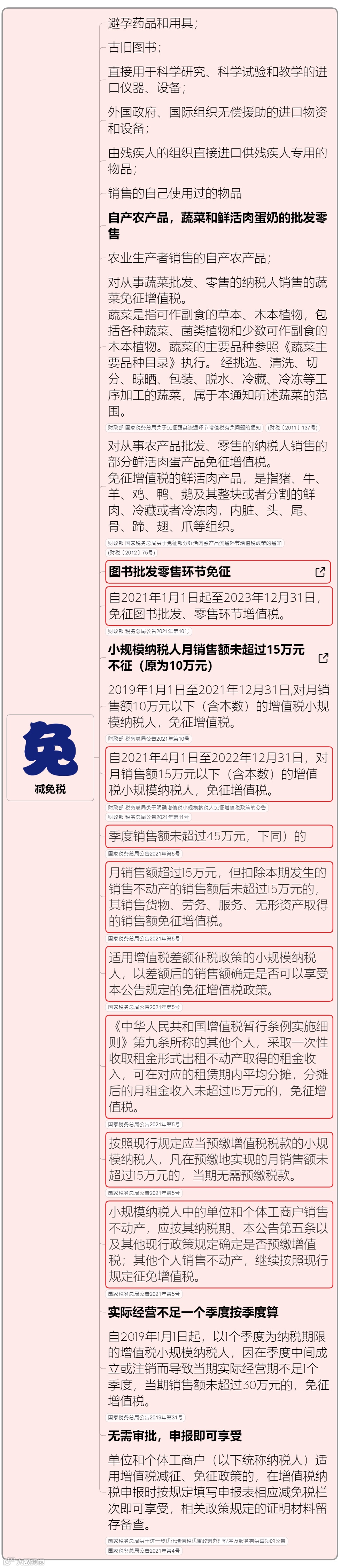 2021年4月1日,根据《财政部 税务总局关于明确增值税小规模纳税人免征增值税政策的公告》和《国家税务总局关于小规模纳税人免征增值税征管问题的公告》两个文件,免税部分添加“自2021年4月1日至2022年12月31日,对月销售额15万元以下(含本数)的增值税小规模纳税人,免征增值税。”