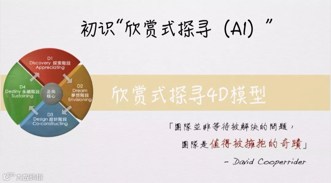 大卫·库伯里德和他在凯斯西储大学的同仁,创造了这个名词。大卫的妻子南希是个艺术家,她常以“欣赏的眼光”看待事物,引起了大卫的好奇,大卫将这种视角注入企业变革管理,形成了AI。