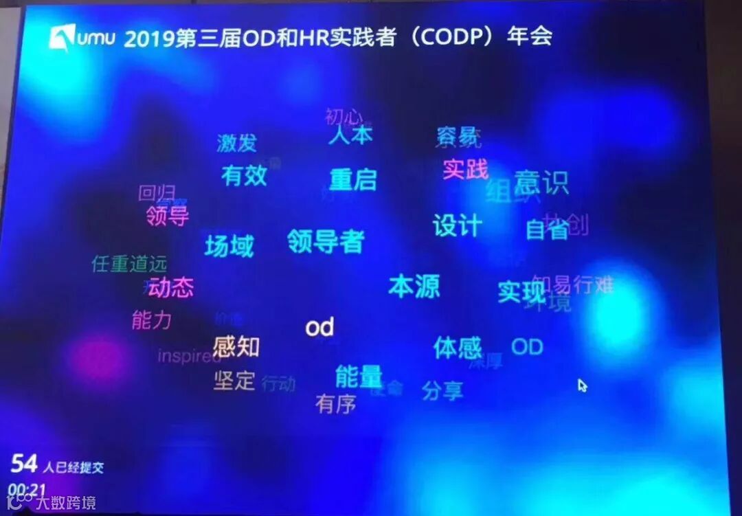如果把所有来到年会现场的OD实践者伙伴做为一个团体组织,那么一天的年会就是一个大型的团体共创OD工作坊,通过OD的方式引导对话、收集数据产出丰硕的果实;随着年会的进行,“组织挑战”、“Aha实践主题”、“OD实践分享”依次涌现~~