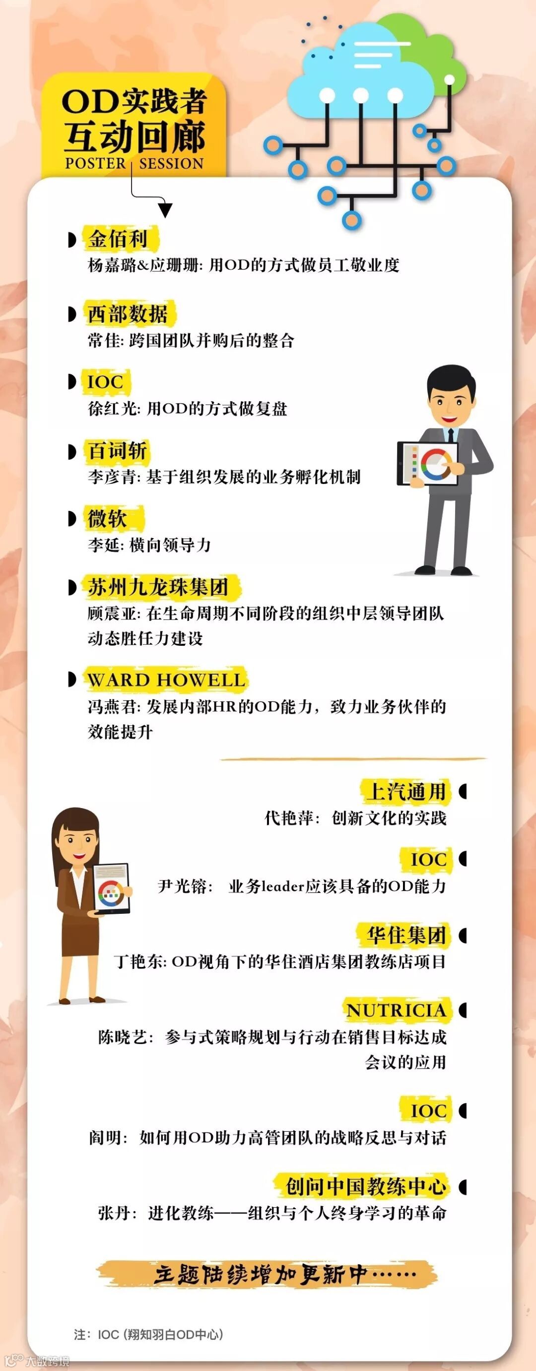 这次年会我们继续秉持为OD实践者们搭建“互相切磋和交流的平台”的初心,保留了广受好评的OD实践者互动回廊,让大家可以在:国际&中国;民企&外企;企业内OD/HR&外部顾问......多方面进行双向的交流和碰撞,从中彼此启发和互相学习!