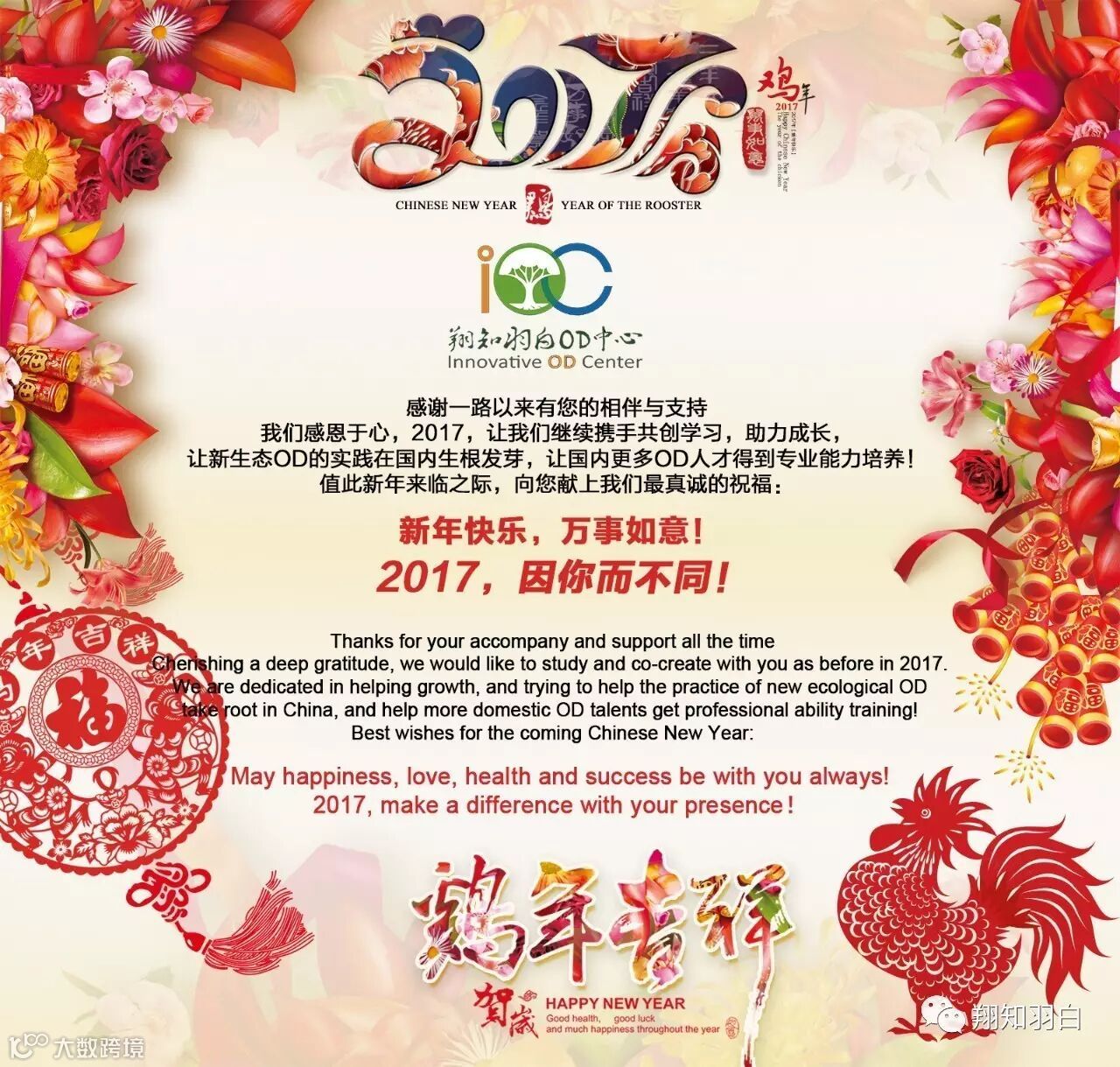 引言:今天是忙碌的一天,大家都忙里忙外准备美食佳肴;今天是热闹的一天,大家团圆相聚,互诉思念;今天也是特殊的日子,大家跟2016年道别,回顾过往,展望2017,辞旧迎新。翔知羽白OD中心,在这特殊的时刻,感恩所有的伙伴们,谢谢你们的支持,我们不会忘记自己的使命,迎接新生态OD的春天,我们也祝福大家,愿大家携手翔知羽白共同成长进步。2017年,因你而不同!