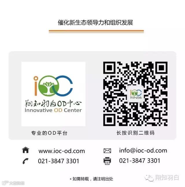翔知羽白OD中心(IOC)致力于催化新生态领导力和组织发展,是国内最专业的组织发展(OD)人才培养平台和最具中西创新融合实践的机构。自2010年起,翔知羽白不断从国外引入领先的组织发展理念和方法,跟阿里巴巴等本土企业长期合作实践,并逐步形成OD认证课程和组织发展专业人士的培养体系。翔知羽白的组织发展咨询服务扎根本土企业,助力组织转型、业务创新、战略落地,焕发企业的精气神,释放组织的创新潜能。