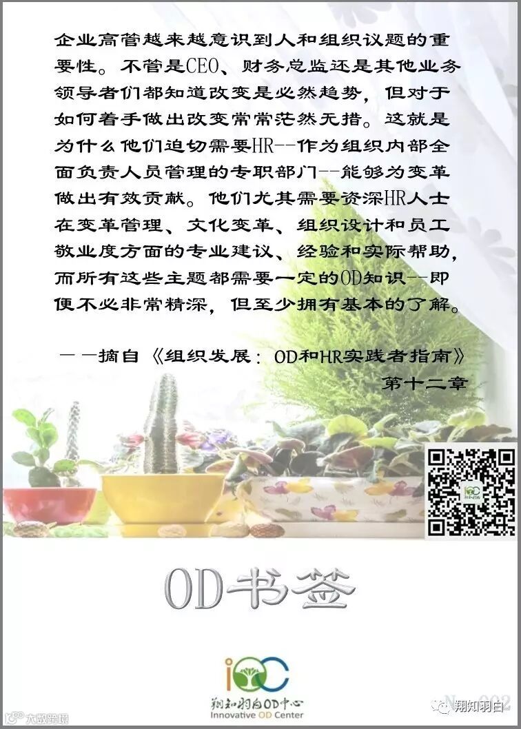 本周和大家分享的书签内容是关于:对HR的期待,摘自翔知羽白引进翻译的Mee-Yan Cheung-Judge和Linda Holbeche合著的《组织发展:OD和HR实践者指南》(英文名:Organization Development: A practitioner's guide for OD and HR)(将于近期出版,敬请期待)